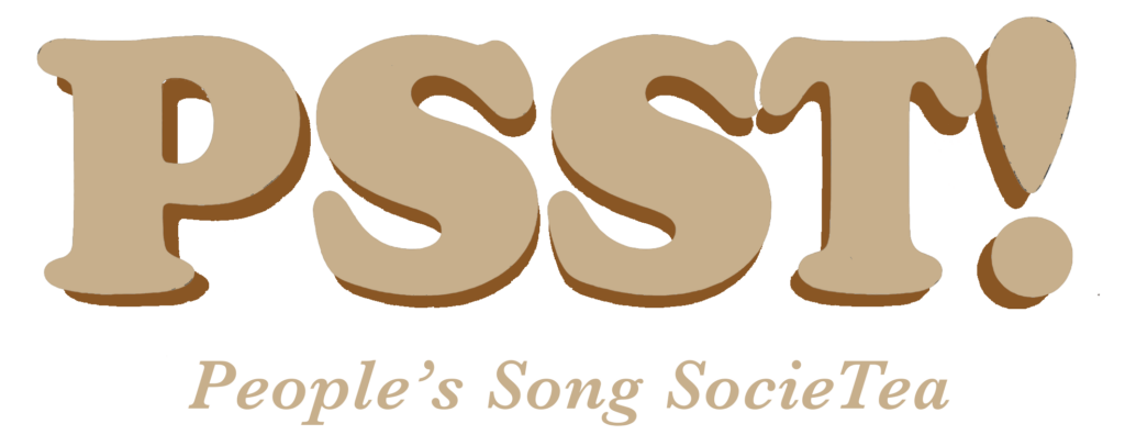 PSST! (People’s Song SocieTea) is a new monthly, curated salon where artists share music, poetry, and other short works inspired by current events and social questions.